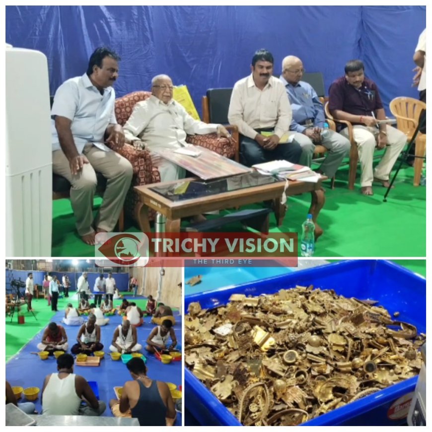 கல், அரக்கு, அழுக்கு போன்றவற்றை நீக்கி நிகர தங்கங்களை தரம் பிரித்து எடை போடும் பணி தற்போது ஓய்வு பெற்ற உச்சநீதிமன்ற நீதிபதி ராஜு தலைமையில், ஓய்வு பெற்ற உயர்நீதிமன்ற நீதிபதிகள் ரவீந்திர பாபு மாலா முன்னிலையில் கோயில் அலுவலக வளாகத்தில் இன்று துவங்கியது.