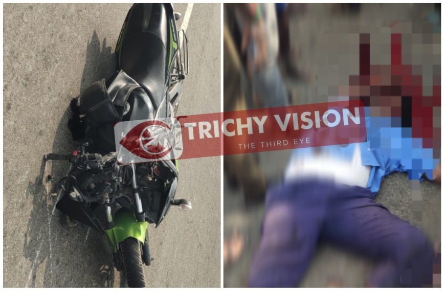 ஓட்டுநர் நேசகுமாரும், நடத்துனர் செந்தில்குமாரும் துவாக்குடி பேருந்து நிறுத்தத்தில் இருந்து எதிரே உள்ள டிபன் கடைக்கு செல்வதற்காக சாலையை கடக்க முயன்றனர். அப்போது திருச்சியில் இருந்து தஞ்சை நோக்கி அதிவேகமாக வந்த பைக் நேசகுமார் மீது மோதியது. இந்த விபத்தில் ஓட்டுநர் நேசக்குமார் ரத்த வெள்ளத்தில் சம்பவ இடத்திலேயே பரிதாபமாக உயிரிழந்தார். பைக்கை ஓட்டி வந்த லால்குடி பகுதியை சேர்ந்த விக்னேஷ் (32) படுகாயம் அடைந்தார்.