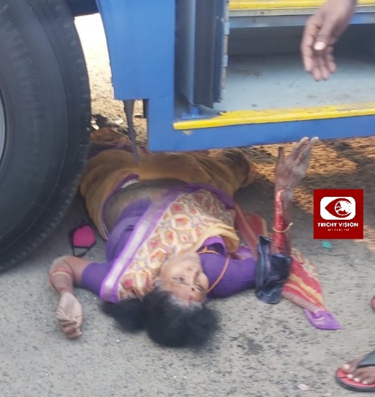 அப்போது அந்த பேருந்தின் முன் பக்கத்தில் சென்றபோது ஓட்டுனர் பேருந்தை நகர்த்தியுள்ளார். அப்போது ராகினி மீது மோதியதில் கிழே விழுந்த பெண்ணின் மீது பேருந்தின் முன் சக்கரம் ஏறி இறங்கியது. இதில் பலத்த காயமடைந்த ரோகிணி அவசர ஊர்தி மூலம் திருச்சி அரசு மருத்துவமனைக்கு அழைத்து செல்லப்பட்டார்.