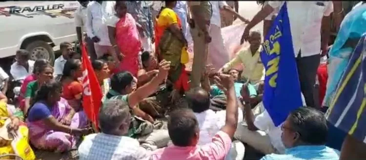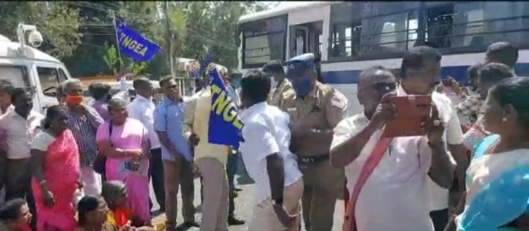 போராட்டத்தில் ஈடுபட்டவர்களுக்கும் இடையே தள்ளுமுள்ளு ஏற்பட்டது, பின்னர் அனைவரையும் காவல்துறையினர் கைது செய்தனர்.
