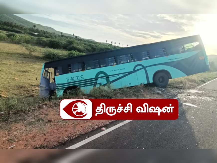 சென்னையில் இருந்து நேற்று மாலை அரசு விரைவு பேருந்து ஓட்டுநர் சௌந்தர் (39), நடத்துனர் சின்னதம்பி மற்றும் 30 பயணிகளுடன் நாகர்கோவிலுக்கு சென்று கொண்டிருந்தது. திருச்சி மாவட்டம் துவரங்குறிச்சி திருச்சி – மதுரை தேசிய நெடுஞ்சாலை அருகே வெங்கட் நாயக்கன்பட்டி பிரிவு சாலை அருகே சென்று கொண்டிருந்தது.