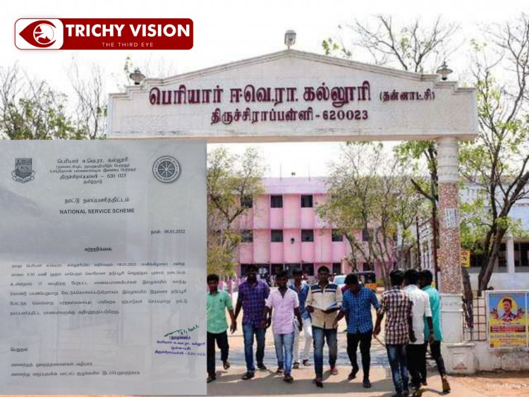 திருச்சி அண்ணா விளையாட்ரங்கில் அருகேயுள்ள பெரியார் ஈ.வெ.ரா. கல்லூரியில் நாளை 08.01.2022 (சனிக்கிழமை) காலை 9.30 மணி முதல் மாபெரும் கொரோனா தடுப்பூசி செலுத்தும் முகாம் நடைபெற உள்ளது. 15 வயதிற்கு மேற்பட்ட மாணவ – மாணவியர்கள் இம்முகாமில் கலந்து கொண்டு பயன்பெறலாம் என தெரிவிக்கப்பட்டுள்ளது.