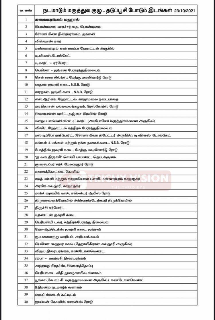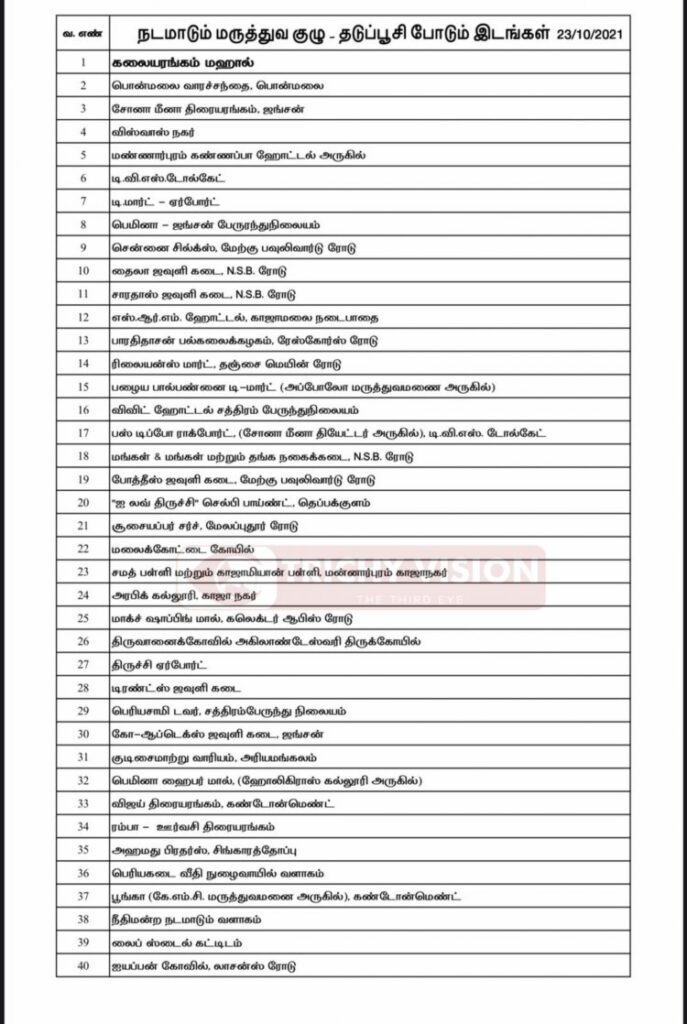திருச்சி மாவட்டத்தில் நாளை(23.10.2021) 6ம் கட்டமாக மெகா கோவிட் தடுப்பூசி முகாம் நடைபெற உள்ளது. 600 இடங்களில் மாவட்டத்தில் நாளை ஒரு லட்சம் பேருக்கு மேல் தடுப்பூசி செலுத்த இலக்கை அடைய மாவட்ட நிர்வாகம் துரித கதியில் அனைத்து ஏற்பாடுகளையும் செய்து வைத்துள்ளது.
