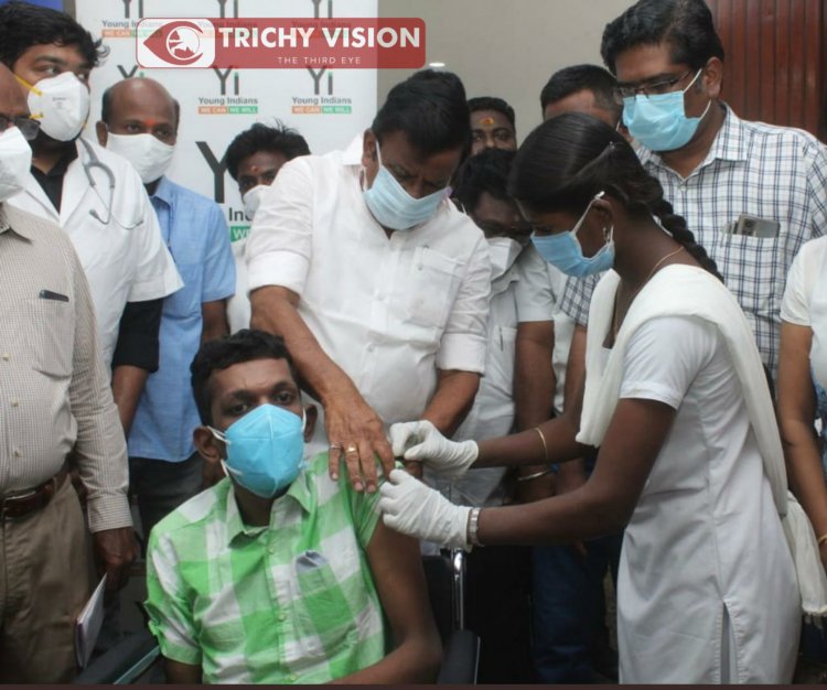 திருச்சி மத்திய பேருந்து நிலையம் அருகே உள்ள கலையரங்கம் திருமண மண்டபத்தில் மாற்றுத்திறனாளிகளுக்கான பிரத்தியேகமாக சிறப்பு தடுப்பூசி முகாம் நடைபெற்றது.இம்முகாமை நகர்ப்புற வளர்ச்சித்துறை அமைச்சர் கே என் நேரு துவக்கி வைத்தார். மாவட்ட ஆட்சித்தலைவர் சிவராசு, சுகாதாரத்துறை துணை இயக்குனர் ராம் கணேஷ் மருத்துவர் முகமது ஹக்கீம் உள்ளிட்டோர் உடனிருந்தனர்.
