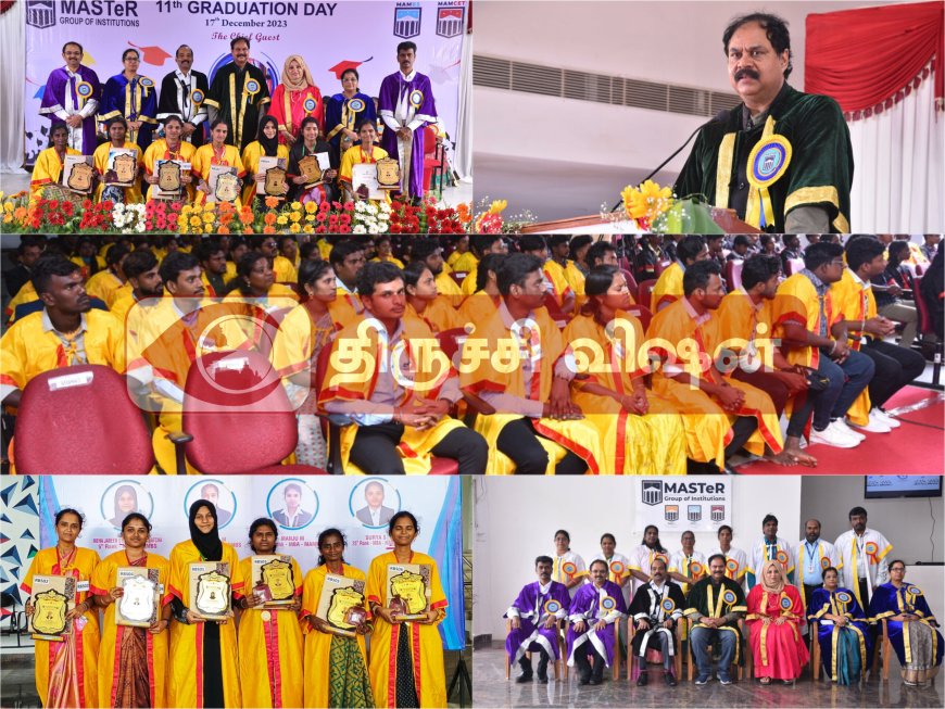 எம்.ஏ.எம். மேலாண்மை கல்லூரியில் 11வது பட்டமளிப்பு விழா (17.12.2023) அன்று காலை 10:30 மணிக்கு நியூட்டன் ஹாலில் நடைபெற்றது. நிகழ்ச்சிக்கு சிறப்பு தலைமை விருந்தினராக நேச்சுரல்ஸ் நிறுவனத்தின் இணை நிறுவனர் மற்றும் தலைமை நிர்வாக அதிகாரி, சி.கே. குமரவேல் கலந்து கொண்டார்.