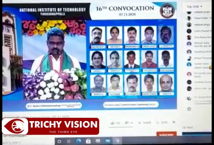 திருச்சி என்ஐடியின் 16வது பட்டமளிப்பு விழா இன்று திருச்சி பார்ன் ஹாலில் நடைபெற்றது. வீடியோகான்பிரன்சிங் மூலமாக நடைபெற்ற முதல் பட்டமளிப்பு விழாவாகும்.