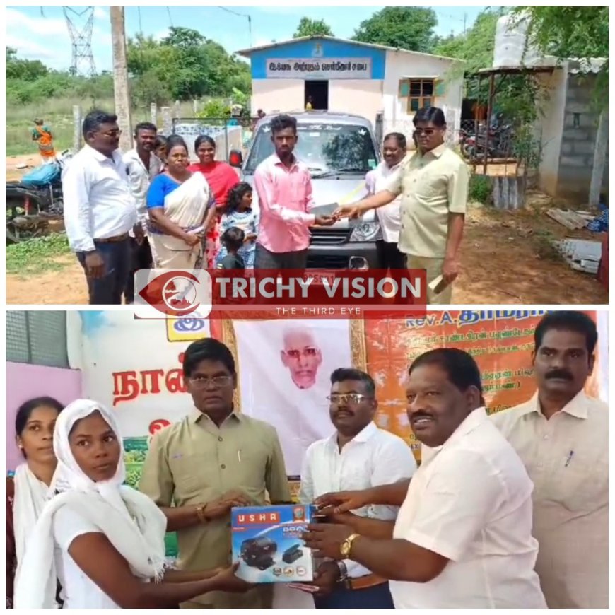இந்தவகையில் இந்த ஆண்டில் முன்னாள் தலைவர் தர்மராஜ் நினைவு தினத்தை முன்னிட்டு திருச்சி அருகே மலம்பட்டியில் நலத்திட்ட உதவிகள் வழங்கும் நிகழ்ச்சி நடைபெற்றது. கிரம்மர் சாண்டகிரன் பவுண்டேஷன் சார்பில் மலம்பட்டியில் செயல்படும் “இயேசு அற்புதம் செய்கிறார்” சபையில் இன்று காலை சிறப்பு பிரார்த்தனை நடைபெற்றது.