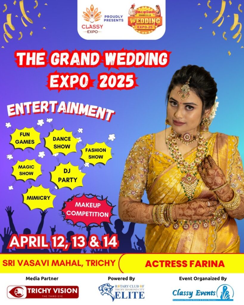 இதில் திருமண நிகழ்ச்சிக்கு தேவையான அனைத்தும் ஒரே இடத்தில் அமைய உள்ளது. நகைகள் புடவைகள் போட்டோகிராபர்ஸ் மேக்கப் ஆர்டிஸ்ட் பா அண்ட் சலூன் டிராவல்ஸ் மற்றும் பல. இந்நிகழ்ச்சியில் சிறப்பு விருந்தினராக சின்னத்திரை நடிகை ஃபரீனா ஆசாத் அவர்கள் கலந்து கொள்ள உள்ளார் அனுமதி இலவசம்.