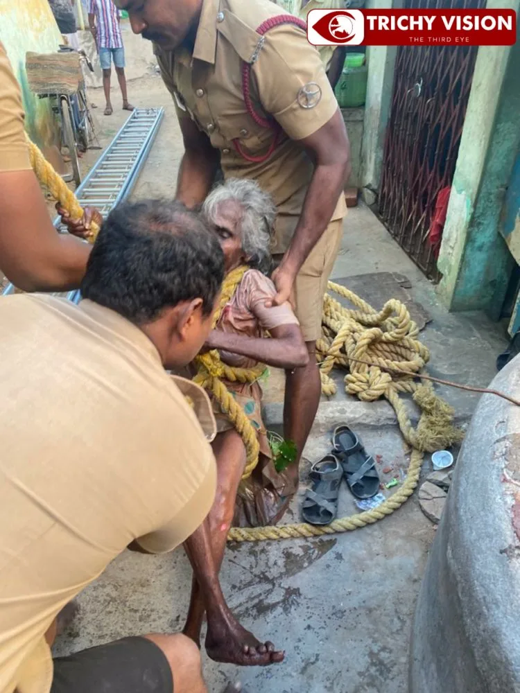 திருச்சி டி.வி.எஸ் டோல்கேட் அருகே உள்ள திருவள்ளுவர் நகர் பகுதியைச் சேர்ந்தவர் சீதாலட்சுமி ( 80 ). இவர் அந்த பகுதியில் உள்ள தனது மகள் வீட்டில் வசித்து வருகிறார். இவர்கள் வீட்டின் பின்புறம் 25 அடி ஆழத்தில் கிணறும், அதில் 5 அடி ஆழத்தில் தண்ணீர் உள்ளது. இந்நிலையில் மூதாட்டி சீதாலட்சுமி கிணற்றை எட்டி பார்த்த போது கால் தவறி கிணற்றுக்குள் விழுந்தார்.