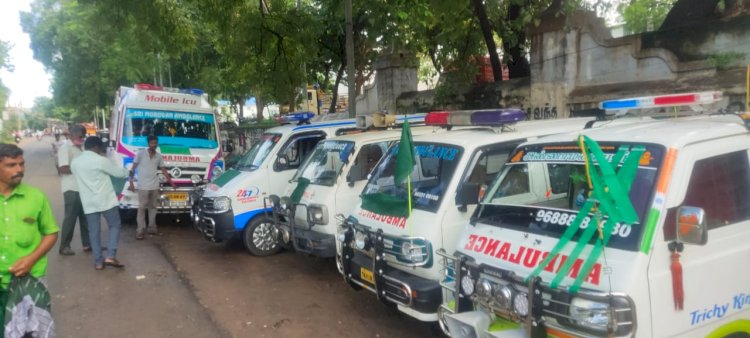 மேலும், பல்வேறு அரசியல் கட்சியினர் மற்றும் அமைப்புகள் போராட்டம் நடத்தி வருகின்றனர். இந்நிலையில் திருச்சியில் தமிழ்நாடு தனியார் ஆம்புலன்ஸ் ஓட்டுநர்கள் மற்றும் உரிமையாளர்கள் சங்கத்தினர் தங்களது ஆம்புலன்ஸ் வாகனத்தில் பச்சை கொடி கட்டி டெல்லியில் போராடும் விவசாயிகளுக்கு ஆதரவு தெரிவித்து வருகின்றனர்.