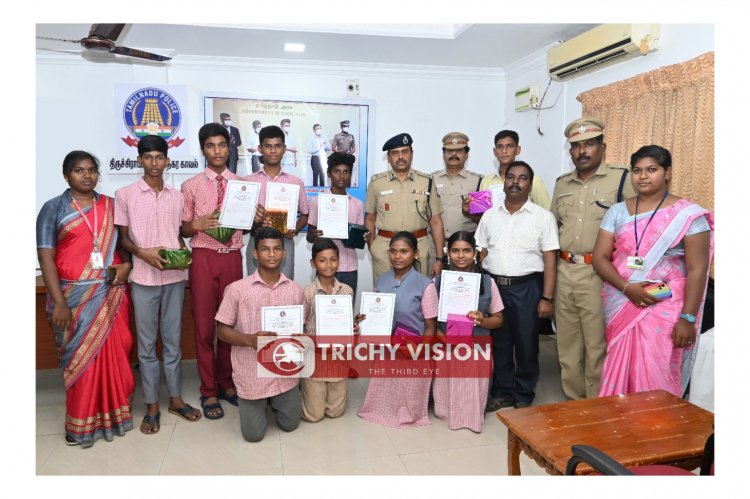 மேலும் நடைபெற்ற கட்டுரை போட்டியில் 15 மாணவ – மாணவிகளும், ஓவியப்போட்டியில் 55 மாணவ – மாணவிகளும் என மொத்தம் 70 மாணாக்கர்கள் கலந்து கொண்டனர். மேற்படி கட்டுரை மற்றும் ஒவிய போட்டிகளில் வெற்றி பெற்றவர்களுக்கு திருச்சி மாநகர காவல் ஆணையர் திருச்சி மாநகர காவல் ஆணையகரம் அலுவலகத்திற்கு நேரில் அழைத்து
