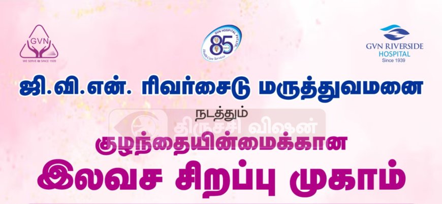 ஜி.வி.என்ரிவர்சைடு மருத்துவமனை நடத்தும் குழந்தை இன்மைக்கான இலவச சிறப்பு முகாம். (30. 03.2025) ஞாயிற்றுக்கிழமை அன்று நடைபெற உள்ளது. இதில் DR. கவிதா செந்தில் MD.,DIP Reproductive medicine DR. கஜதீபன் MD(AIIMS-new Delhi) கலந்துகொண்டு மகப்பேறு மற்றும் குழந்தையின்மைக்கான சிறப்பு ஆலோசனை வழங்க உள்ளனர்.