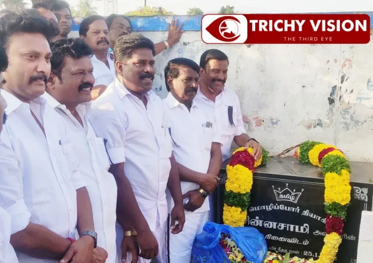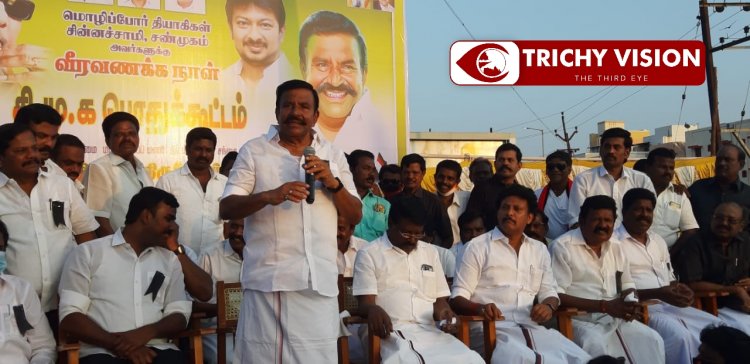 திமுக சார்பில் திமுக முதன்மைச் செயலாளர் கே.என்.நேரு தலைமையில் 300 க்கும் மேற்பட்டோர் திருச்சி பாஸ்போர்ட் அலுவலகத்தில் இருந்து பேரணியாக திருச்சி உழவர் சந்தை அருகே உள்ள இந்தி எதிர்ப்புப் போராட்டத்தில் உயிர்நீத்த கீழப்பழூர் சின்னச்சாமி, விராலிமலை சண்முகம் ஆகியோரின் நினைவிடத்திற்கு மலர் வளையம் வைத்து மலர் தூவி அஞ்சலி செலுத்தினர். வீர வணக்க நாள் பொதுக் கூட்டத்திற்கு பிறகு செய்தியாளர்களிடம் பேசிய திமுக முதன்மைச் செயலாளர் கே.என்.நேரு,