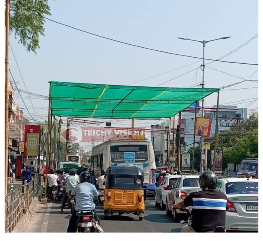 வெயில் தாக்கம் – சிக்னலில் நிழற்குடை அமைத்த திருச்சி மாநகர காவல் துறை