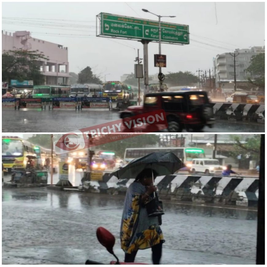 இதில் திருச்சி மத்திய பேருந்து நிலையம், மாவட்ட ஆட்சியர் அலுவலகம், தில்லைநகர், சத்திரம் பேருந்து நிலையம், உறையூர் ஆகிய பகுதிகளில் கனமழை வெளுத்து வாங்கியது. இதே போல் சமயபுரம், நம்பர் ஒன் டோல்கேட், வயலூர், மண்ணச்சநல்லூர் உள்ளிட்ட புறநகர் பகுதிகளிலும் மழை பெய்து வருகிறது.