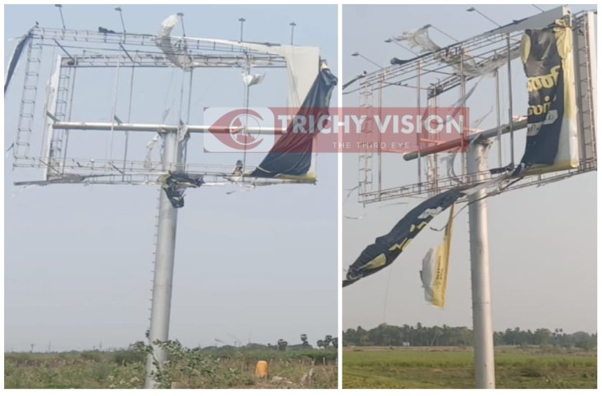 காவு வாங்க காற்றில் ஆடும் உயர் கோபுர விளம்பரம் பதாகை