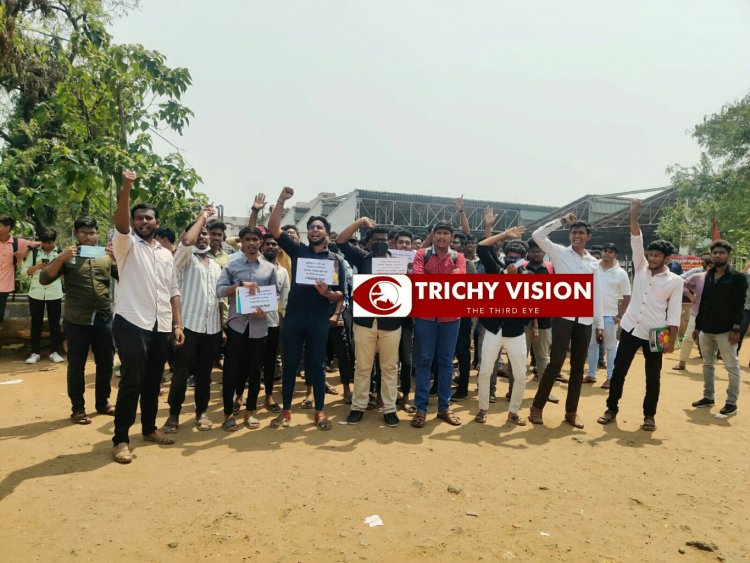 இந்நிலையில் இந்த தீர்ப்புக்கு கண்டனம் தெரிவித்து கல்லூரி மாணவர்களும் போராட்டம் நடத்தி வருகின்றனர். இந்நிலையில் இன்று திருச்சி ஜமால் முஹம்மது கல்லூரி மாணவர்கள் நூறுக்கும் மேற்பட்டோர் கல்லூரி அமைந்துள்ள டி.வி.எஸ்.டோல்கேட் பகுதியில் ஹிஜாப் தடைக்கு எதிராக ஆர்ப்பாட்டத்தில் ஈடுபட்டனர்.