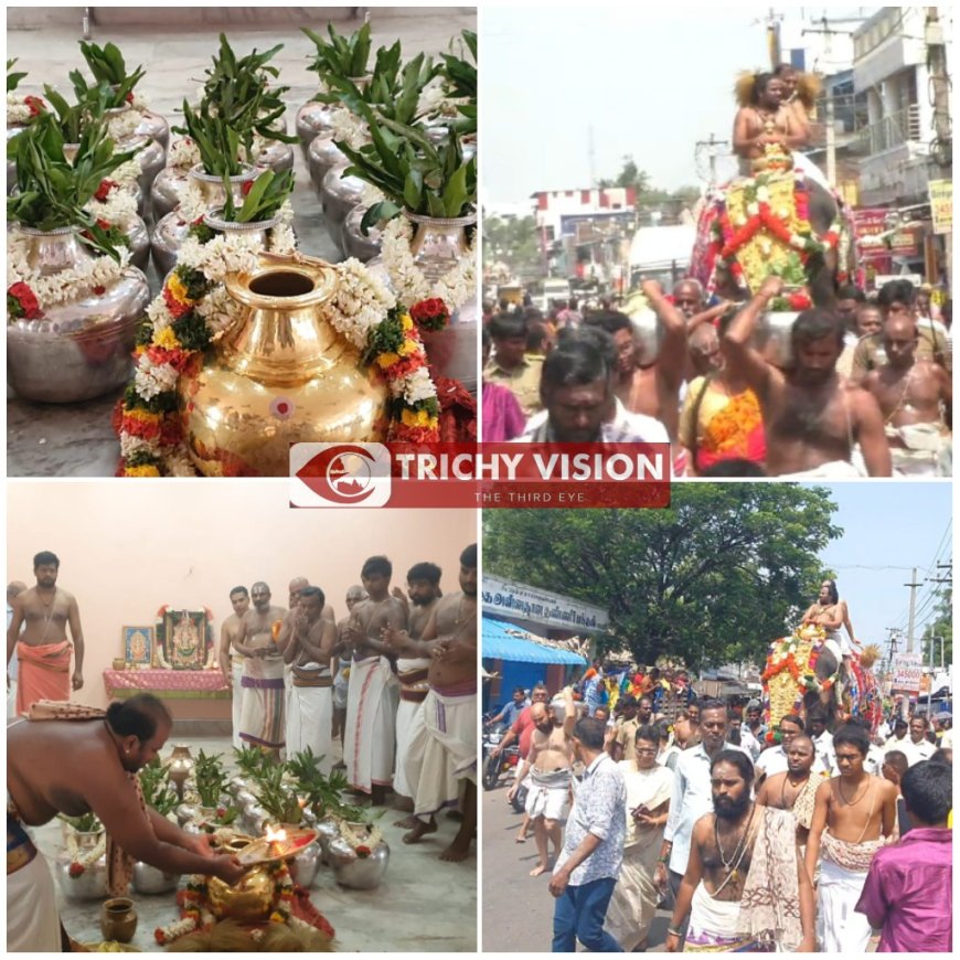 இந்த பஞ்சப்பிரகார விழாவில் பத்தாம் திருநாளான இன்று ஸ்ரீரங்கம் ரங்கநாதர் கோயில் பட்டாச்சாரியார்களின் திரு காவிரியில் இருந்து வெள்ளி குடங்களில் தீர்த்தம் கொண்டு வந்தும் மற்றும் யானை மேல் தங்க குடத்தில் தீர்த்தமாக இத்திருக்கோயிலில் இருந்து பாரம்பரியமாக தங்கம் மற்றும் வெள்ளி குடங்களில் பரிவாரங்கள்