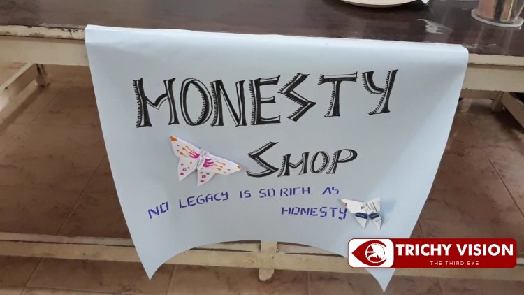 அந்த வகையில் திருச்சியில் நூற்றாண்டுகள் பாரம்பரியமிக்க கருமண்டபத்தில் உள்ள தேசிய கல்லூரியில் புதுவித முயற்சியாக நேர்மை கடை ஒன்றை ஆரம்பித்துள்ளனர். கல்லூரியில் உள்ள மாணவர்களுக்கு முதற்கட்டமாக நேர்மை என்பதை சிறு வயதிலேயே விதைக்கும் வகையில் “Honesty Shop” நேர்மை கடை‌ ஒன்றை கல்லூரி வளாகத்திற்குள்ளேயே உருவாக்கியுள்ளனர். இந்த நேர்மையின் கடையில் எழுதுபொருட்கள், பேனா மாணவர்களுக்கு தேவையான அனைத்தும் அங்கு வைக்கப்பட்டுள்ளது.