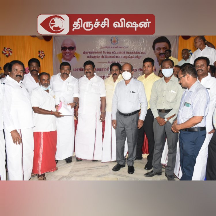 திருச்சிராப்பள்ளி மாநகராட்சிக்குட்பட்ட 25 ஆவது வார்டு, வயலூர் சாலை, உய்யக்கொண்டான் பாலம் அருகில். திருச்சிராப்பள்ளி மேற்கு சட்டமன்ற தொகுதிக்குட்பட்ட 225 பயனாளிகளுக்கு வீட்டுமனைப் பட்டாக்களை மாண்புமிகு நகராட்சி நிர்வாகத் துறை அமைச்சர் கே. என்.நேரு இன்று (6.6.22) வழங்கினார்.