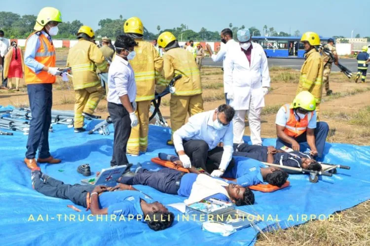 ஒத்திகை நிகழ்வில் மாநில தீயணைப்பு மற்றும் மீட்புப்பணிகள் குழுவும், திருச்சிராப்பள்ளியின் கி.ஆ.பெ.விஸ்வநாதம் அரசு மருத்துவமனை, எஸ்.ஆர்.எம் மருத்துவமனை, காவிரி மருத்துவமனை மற்றும் அப்போலோ மருத்துவமனை ஆகிய மருத்துவமனையின் ஊழியர்கள் இணைந்து இந்த ஒத்திகை நிகழ்ச்சியில் பங்கேற்றனர்.