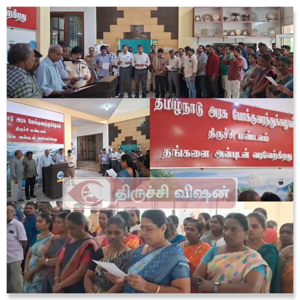 தமிழ்நாடு அரசு போக்குவரத்து கழகம் கும்பகோணம் கோட்டம் திருச்சி மண்டலத்தின் சார்பில் சர்வதேச மனித உரிமைகள் நாள் தினத்தை முன்னிட்டு மனித உரிமைகள் உறுதிமொழி துணை மேலாளர்( பணியாளர்) ஆர். இராமநாதன் அவர்கள் முன்னிலையில் அனைத்து போக்குவரத்து கழக பணியாளர்கள் உறுதிமொழி இன்று 10/12/2025 எடுத்துக் கொண்டனர்.