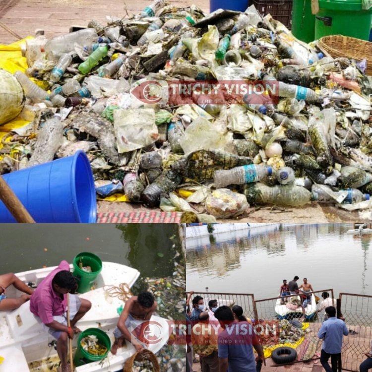திருச்சி மலைக்கோட்டை கோவில் தெப்பக்குளத்தில் நூற்றுக்கணக்கான மீன்கள் இறந்து கிடந்ததை மாநகராட்சி ஊழியர்கள் சுத்தம் செய்துள்ளனர். இது குறித்து மீன்வளத்துறை நடத்திய முதற்கட்ட விசாரணையில் அதிகப்படியான பிளாஸ்டிக் கழிவுகளையும் உணவு கழிவுகள் குளத்தினுள் கலப்பதால் நீர் மாசடைந்துள்ளது. நீர் மாதிரிகளை சோதனை செய்ததில் அதிகப்படியான கழிவுகள் கலக்கப்பட்டுள்ளது