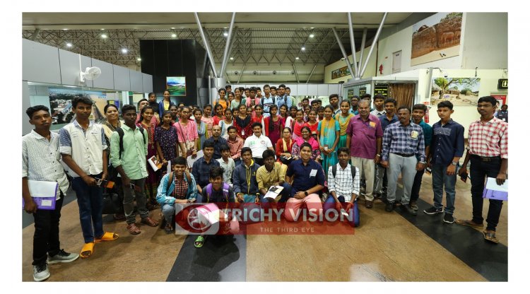 திருச்சி விமான நிலையத்தில் இருந்து ஏர் இந்தியா விமானத்தில்  மாணவ, மாணவிகளுடன் அமைச்சர் மகேஸ் சென்றார். மேலும் மாணவர்களுடன் ஐந்து ஆசிரியர்கள் உட்பட அதிகாரிகள் சென்றுள்ளனர்.