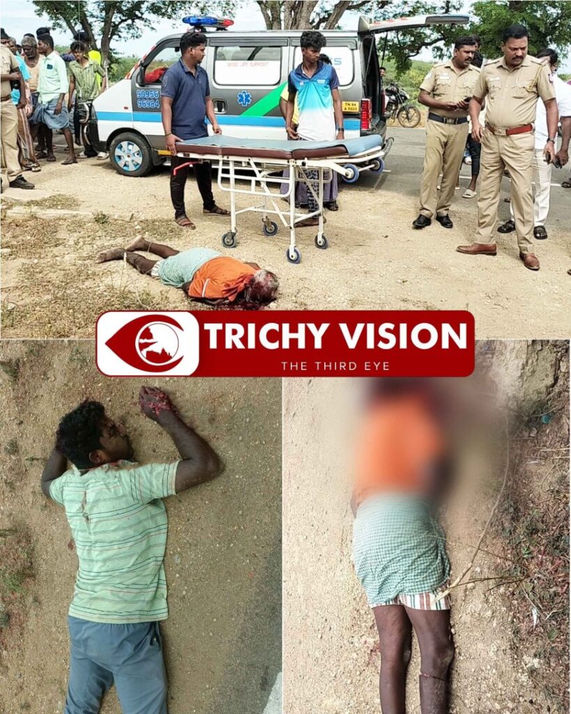 மணப்பாறை அடுத்த குளித்தலை சாலையில் ஆண்டவர் கோவில் கலிங்கப்பட்டி பிரிவு அருகே இருசக்கர வாகனத்தில் ஒரு கும்பல் இவர்களை சரமாரியாக வெட்டத் தொடங்கியது. இதில் குப்புசாமி சம்பவ இடத்திலேயே பரிதாபமாக உயிரிழந்தார். மாரிமுத்து பலத்த காயங்களுடன் கீழே விழுந்து கிடந்தார். அந்த வழியாக சென்ற வாகன ஓட்டிகள் மற்றும் பொதுமக்கள் மாரிமுத்துவை மீட்டு சிகிச்சைக்காக ஆம்புலன்ஸ் மூலம் மணப்பாறை தனியார் மருத்துவமனைக்கு அனுப்பி வைத்தனர்.