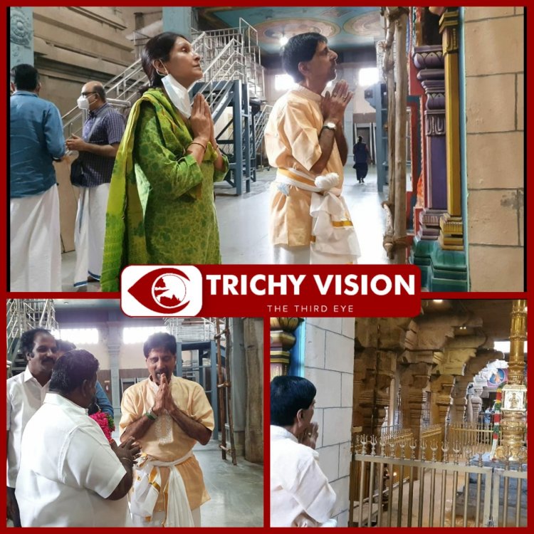 கோயில் குருக்கள்கள் அவருக்கு பூரண மரியாதை செலுத்தி அர்ச்சனை செய்தனர். பின்னர் கோயில் உள்பிரகத்தில் குடும்பத்துடன் சுற்றி வந்து தரிசனம் செய்தார்.