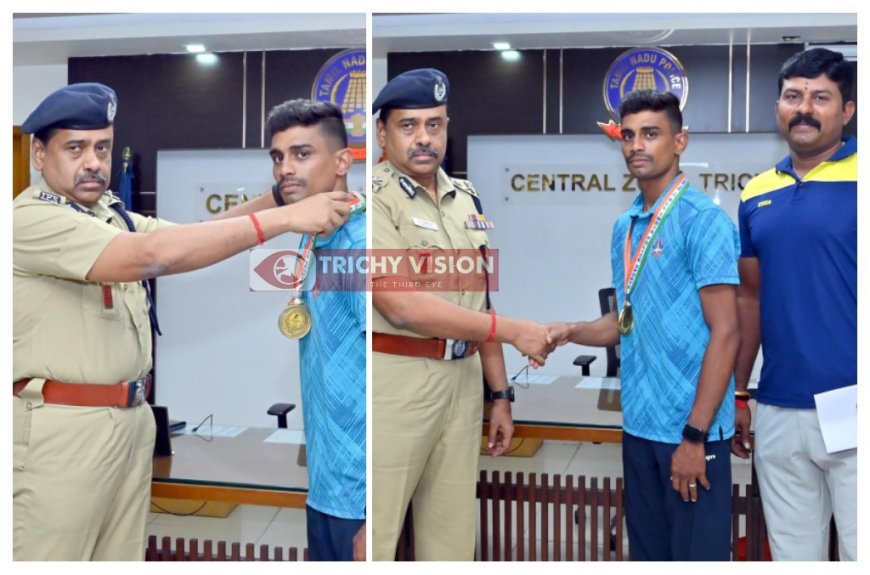 இந்திய அளவில் நடைபெற்ற 73வது மல்யுத்த போட்டியில் 73 ஆண்டுகளில் இதுவரை யாரும் வாங்காத தங்கப்பதக்கத்தை வென்ற தமிழக காவல் துறைக்கு பெருமை சேர்த்த தஞ்சாவூர் மாவட்டம் அம்மாபேட்டை காவல் நிலையத்தில் பணிபுரியும் காவலர் ஹரிகிருஷ்ணனை, மத்திய மண்டல காவல்துறை தலைவர் நேரில் அழைத்து பரிசுகளை வழங்கி வாழ்த்து தெரிவித்தார்.