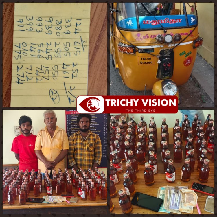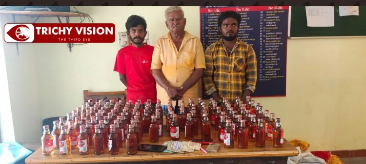 லால்குடி அருகே நகர் பகுதியில் தனியார் உணவு விடுதியில் அனுமதியின்றி மதுபானம் விற்ற வின்சென்ட்(70) அருண் சின்னப்பா(29) வேல்முருகன் (20) ஆகிய 3 பேரை கைது செய்து அவரிகளிடமிருந்து 125 குவாட்டர் மது பாட்டில்கள்,ரூ. 2240 ரொக்கம் ஆகியவற்றை பறிமுதல் செய்தனர்.