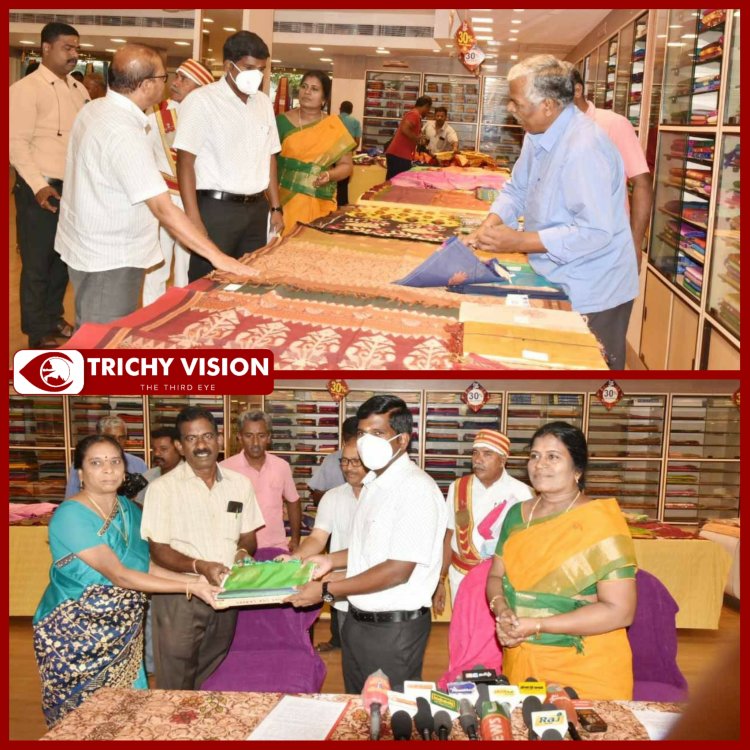 தொடர்ந்து செய்தியாளர்களுக்கு பேட்டியளித்த மாவட்ட ஆட்சியர் பிரதீப்குமார்….திருச்சி பொதிகை விற்பனை நிலையத்தில் தீபாவளி 2021ல் ரூ.143.7 இலட்சங்கள் விற்பனை செய்யப்பட்டது. தற்போது தீபாவளி 2022க்கு ரூ.300.00 இலட்சங்கள் விற்பனை இலக்கு நிர்ணயம் செய்யப்பட்டு உள்ளது. மேலும் கோ-ஆப்டெக்ஸ் நிறுவனம், “கனவு நனவு திட்டம்” என்ற சேமிப்பு திட்டத்தினை செயல்படுத்தி வருகிறது. இதன்படி 10 மாத சந்தா தொகை வாடிக்கையாளரிடமிருந்து பெறப்பட்டு, 11 வது மற்றும் 12 வது மாத சந்தா தொகையை கோ-ஆப்டெக்ஸ் செலுத்தி, மொத்த முதிர்வு தொகைக்கு தேவைப்படும் துணிகளை 20 அரசு தள்ளுபடியுடன் துணிகள் வழங்கப்பட்டு வருகிறது.