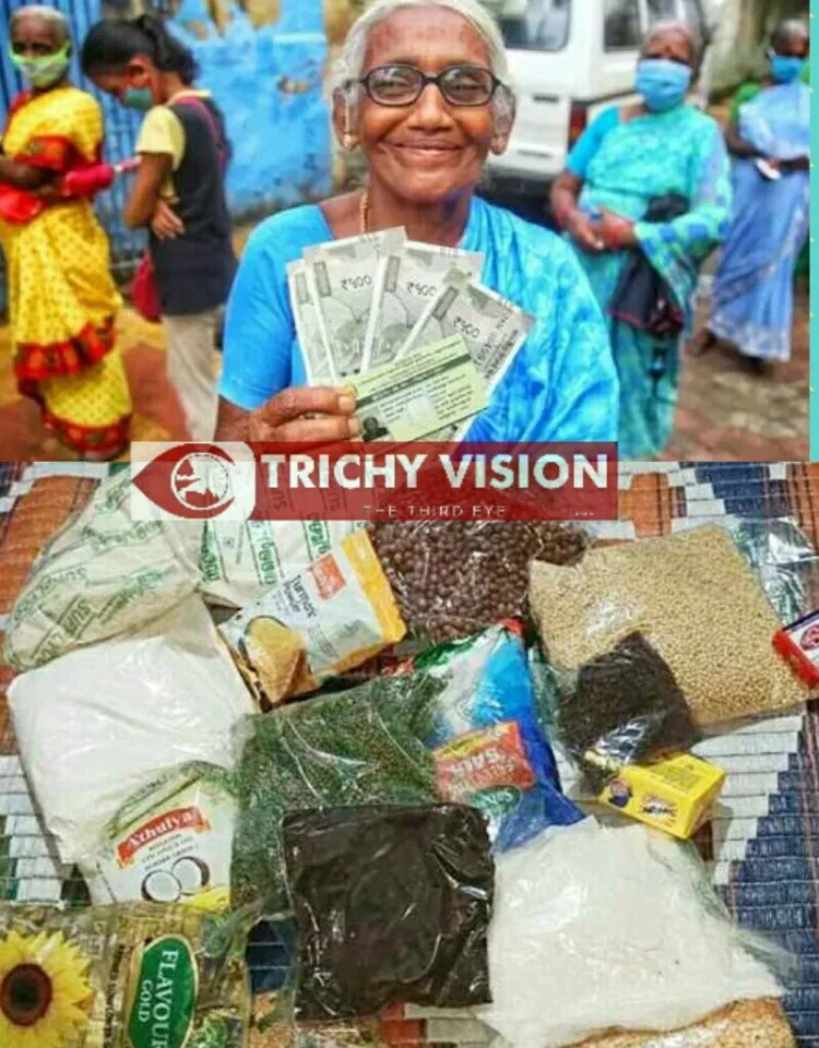 திருச்சி மாவட்டத்தில் 8,13,001 குடும்ப அட்டைதாரர்களுக்கு தலா ரூபாய் 2000 மற்றும் 14 மளிகைப் பொருட்கள் வழங்கப்பட்டு வருகிறது