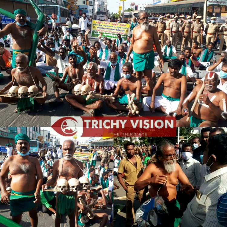 இதனையடுத்து 100க்கும் மேற்பட்ட விவசாயிகள் திருச்சி கரூர் பைபாஸ் ரோடு சாலையில் அமர்ந்து சாலை மறியல் போராட்டத்தில் ஈடுபட்டதுடன் மத்திய அரசை கண்டித்து கண்டன முழக்கமிட்டனர்.