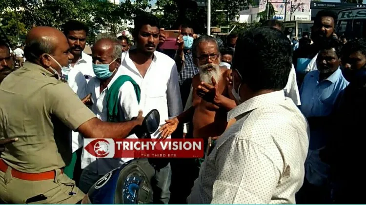 தொடர்ந்து அங்கு பதட்டம் நீடிக்கவே, மறியலில் ஈடுபட்டிருந்த மணப்பாறையை சேர்ந்த ராமலிங்கம் என்ற விவசாயி மத்திய அரசு தங்களை காப்பாற்றவில்லை என்று கூறி திடீரென்று நிர்வாணமாக ஓடியதுடன் அங்கு போராட்டத்தில் ஈடுபட்டதால் பரபரப்பு ஏற்பட்டது.