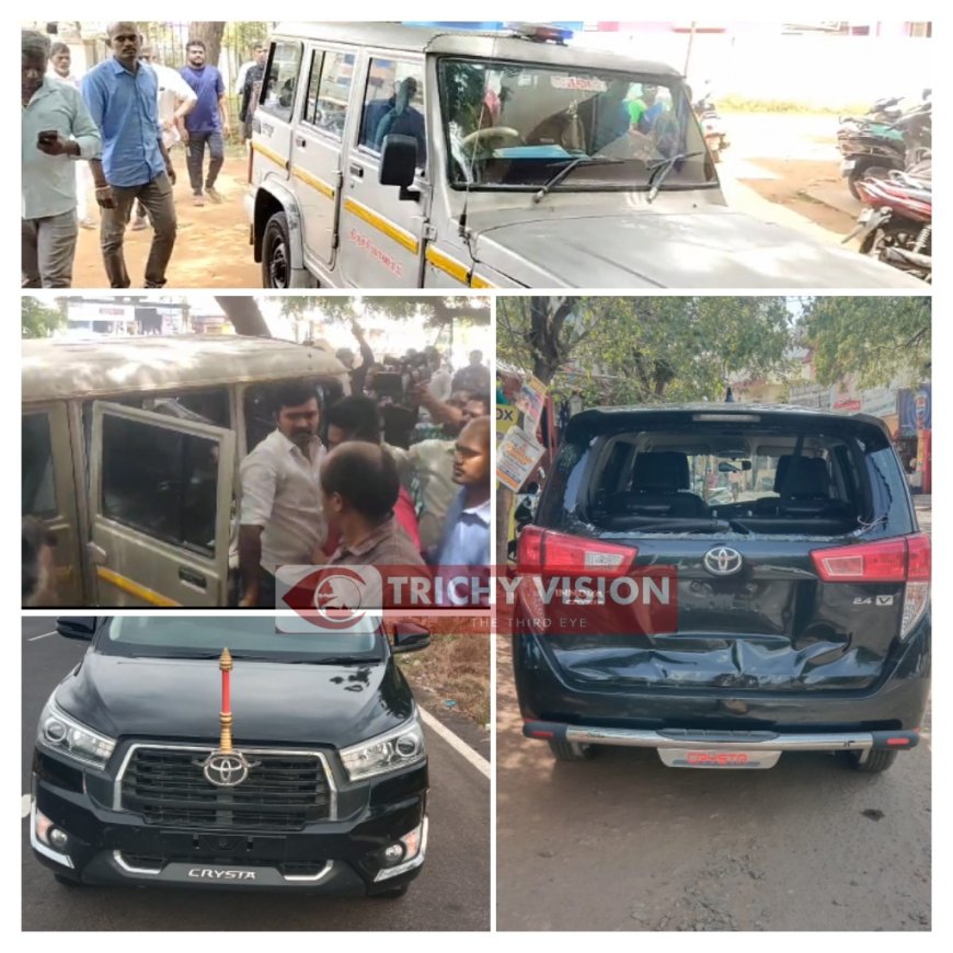 நடைபெற்று முடிந்த விக்கிரவாண்டி இடைத்தேர்தலில் போது நாம் தமிழர் கட்சி சார்பில் போட்டியிட்ட வேட்பாளர் ஆதரித்து பொதுக்கூட்டத்தில் நாம் தமிழர் கட்சியை சேர்ந்த, சாட்டை துரைமுருகன் பேசினார். அதில் திமுக தலைவராக இருந்த முன்னாள் முதல்வர் மறைந்த கலைஞர் கருணாநிதி மற்றும் தமிழ்நாடு அரசை தரக்குறைவாக விமர்சித்ததாக புகார் எழுந்தது. இதனடிப்படையில் A.K. அருண் என்பவர் திருச்சி மாவட்ட காவல் கண்காணிப்பாளரிடம் கொடுத்த புகாரின்படி, திருநெல்வேலி வீராணம் பகுதியில் தனியார் ஹோட்டலில் தங்கியிருந்த சாட்டை துறைமுருகனை திருச்சி மாவட்ட சைபர் க்ரைம் போலீசார் கைது செய்து திருச்சிக்கு அழைத்து வந்துள்ளனர். அப்போது சாட்டை துரைமுருகனை அவரது வாகனத்திலேயே காவல்துறை திருச்சி அழைத்து வந்தாக தகவல் வெளியானது. மேலூர் சுங்கச்சாவடி அருகே வரும் போது பின்னால் வந்த லாரி இந்த காரின் மீது மோதியுள்ளது. அதிர்ஷ்டவசமாக காயமின்றி துரைமுருகன் தப்பினார் என நாம் தமிழர் கட்சியினர் சமூக வலைத்தளத்தில் பதிவிட்டுள்ளனர். அங்கிருந்து வேறு கார் மூலம் திருச்சி அழைத்து வந்துள்ளனர்.