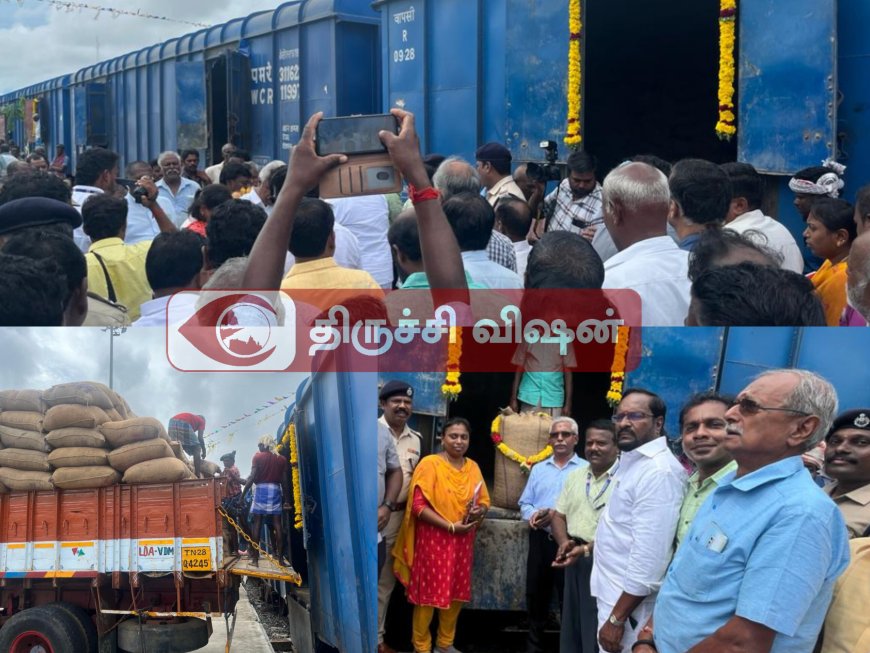 இன்று (04.11.2023), அகஸ்தியம்பள்ளி கூட்ஸ் ஷெட் யார்டை என்.ஸ்ரீகுமார் முதன்மை தலைமை இயக்க மேலாளர்/தெற்கு ரயில்வே மேலாளர் மற்றும் ஸ்ரீ எம்.எஸ்.அன்பழகன், திருச்சிராப்பள்ளி கோட்ட கோட்ட ரயில்வே மேலாளர் முன்னிலையில் பி.வி. ராஜேந்திரன், முன்னாள் எம்.பி., மயிலாடுதுறை, ஸ்ரீ எம்.எம். புகழேந்தி, தலைவர், வேதாரண்யம் நகராட்சி, ஸ்ரீ எம். ஹரிகுமார், GM/ போக்குவரத்து மற்றும் DyCOM, TNCSC, Dr.1. செந்தில் குமார், சீனியர் கோட்ட வணிக மேலாளர், ஸ்ரீமதி ஆர்.பி. ரதிப்ரியா, முதுநிலைப் பிரிவு இயக்க மேலாளர், ஸ்ரீமதி ஏ. சிவப்பிரியா, மூத்த மண்டல மேலாளர் மற்றும் டி.ஆர்.ஓ., நாகப்பட்டினம் மாவட்டம், திருச்சிராப்பள்ளி கோட்ட மூத்த கிளை அலுவலர்கள் மற்றும் ஊழியர்கள், பல்வேறு அரசியல் கட்சிகளைச் சேர்ந்த உறுப்பினர்கள், எல். தொழிலாளர்கள் மற்றும் 300க்கும் மேற்பட்ட பொதுமக்கள் கலந்து கொண்டனர். காஞ்சிபுரத்திற்கு அனுப்பப்படும் 21 வேகன்களில் 1300 டன் (தோராயமாக) நெல் ஏற்றும் பணியை (முதல் முறையாக) உயர் அதிகாரிகள் இன்று தொடங்கினர்.