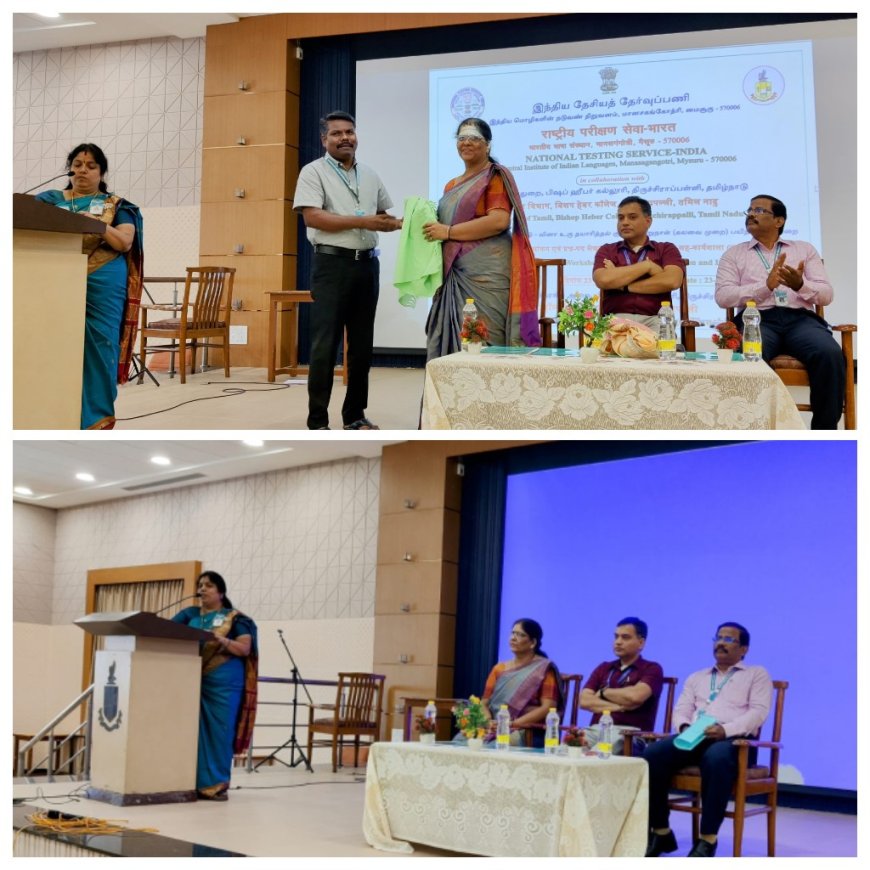 திருச்சிராப்பள்ளி பிஷப் ஹீபர் கல்லூரி தமிழாய்வுத்துறை மற்றும் மைசூரு மானசகங்கோத்ரி இந்திய தேசியத் தேர்வுப்பணி இந்திய மொழிகளின் நடுவண் நிறுவனம் இணைந்து ‘நுண்தேர்வு & மதிப்பீடு தமிழில் வினா உரு தயாரித்தல்’ ஆறு நாள் (கலவை முறை) பயிற்சிப் பட்டறை (23.9.2024 28.9.2024) தொடக்க விழா / Inaugural Session இன்று (23.9.2024) நடைபெற்றது.