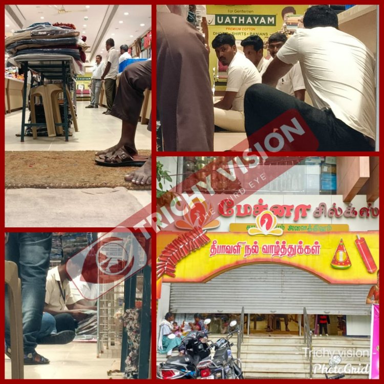 திருச்சி மாவட்டம் முசிறி உட்பட 3 இடங்களில் மேக்னா டெக்ஸூக்கு சொந்தமான ஜவுளி நிறுவனங்கள் மற்றும் இவர்களுக்கு சொந்தமான கிளைகள், வீடு, அலுவலகங்கள் உள்ளிட்டவற்றில் வருமான வரித்துறை அதிகாரிகள் புதன்கிழமை காலை முதல் திடீர் சோதனை நடத்தி வருகின்றனர்.