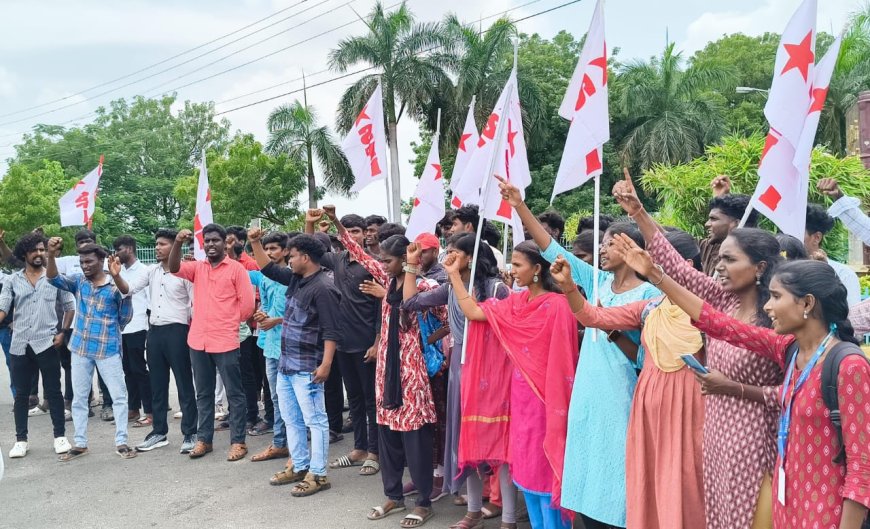 இந்திய மாணவர் சங்கம் இன்று மாநில தழுவிய போராட்டத்தை அனைத்து பல்கலைக்கழகத்தின் முன்பு முன்னெடுக்கப்பட்டது. அதன் ஒரு பகுதியாக திருச்சி மாவட்டம் பாரதிதாசன் பல்கலைக்கழகம் நுழைவாயும் முன்பு இந்திய மாணவர் சங்கம் மாவட்டத் தலைவர் சூர்யா தலைமையில் நடைபெற்றது.