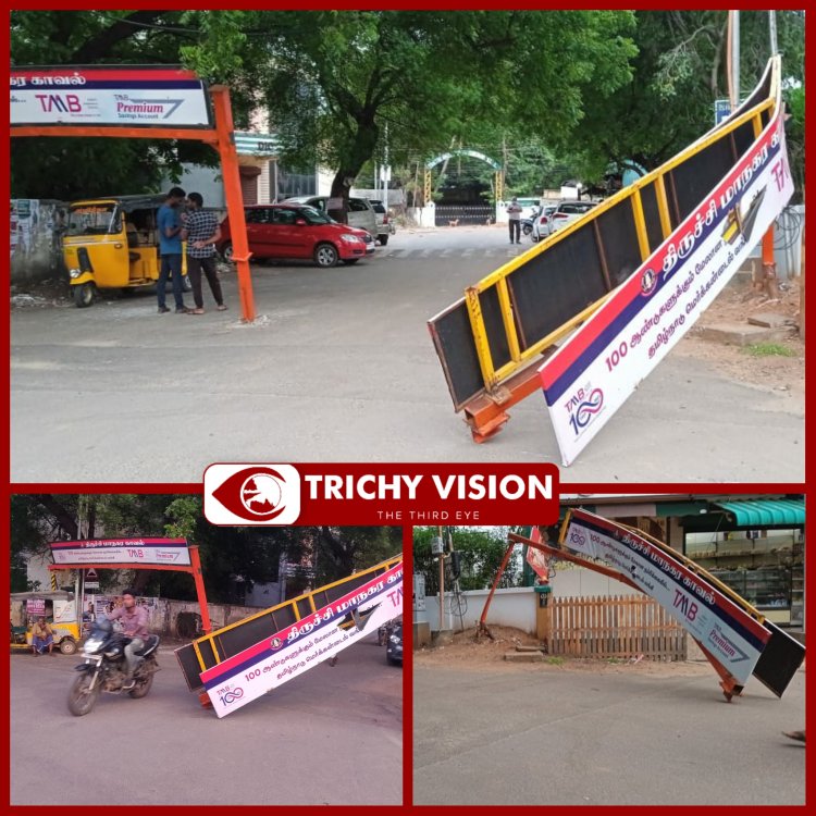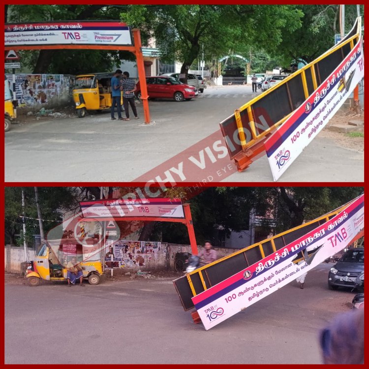 திருச்சி மாநகரில் கடும் போக்குவரத்து நெரிசல் ஏற்படுகிறது இதனை சரி செய்யும் வகையில் சில சாலைகளை ஒருவழிப்பாதையாகவும் இலகு ரக வாகனங்கள் மட்டும் செல்லக்கூடிய வகையில் மாற்றி அமைக்கப்பட்டுள்ளன. இதன் ஒரு பகுதியாக திருச்சி மாவட்ட ஆட்சியர் அலுவலக சாலையில் ராஜா காலணியிலிருந்து மத்திய பேருந்து நிலையத்திற்கு செல்லக்கூடிய பகுதியில் கனரக வாகனங்கள் செல்லாமல் இருப்பதற்காக இரும்பிலான தடுப்பு அமைக்கப்பட்டிருந்தது. அதில் கண்காணிப்பு கேமராவும் பொருத்தப்பட்டிருந்தது. இதனால் இரு சக்கர வாகனம் மற்றும் நான்கு சக்கர வாகனங்கள் மட்டும் சென்று கொண்டிருந்தன. நாளடைவில் அந்த கண்காணிப்பு கேமராவும் பழுதடைந்து காணாமல் போய்விட்டது.