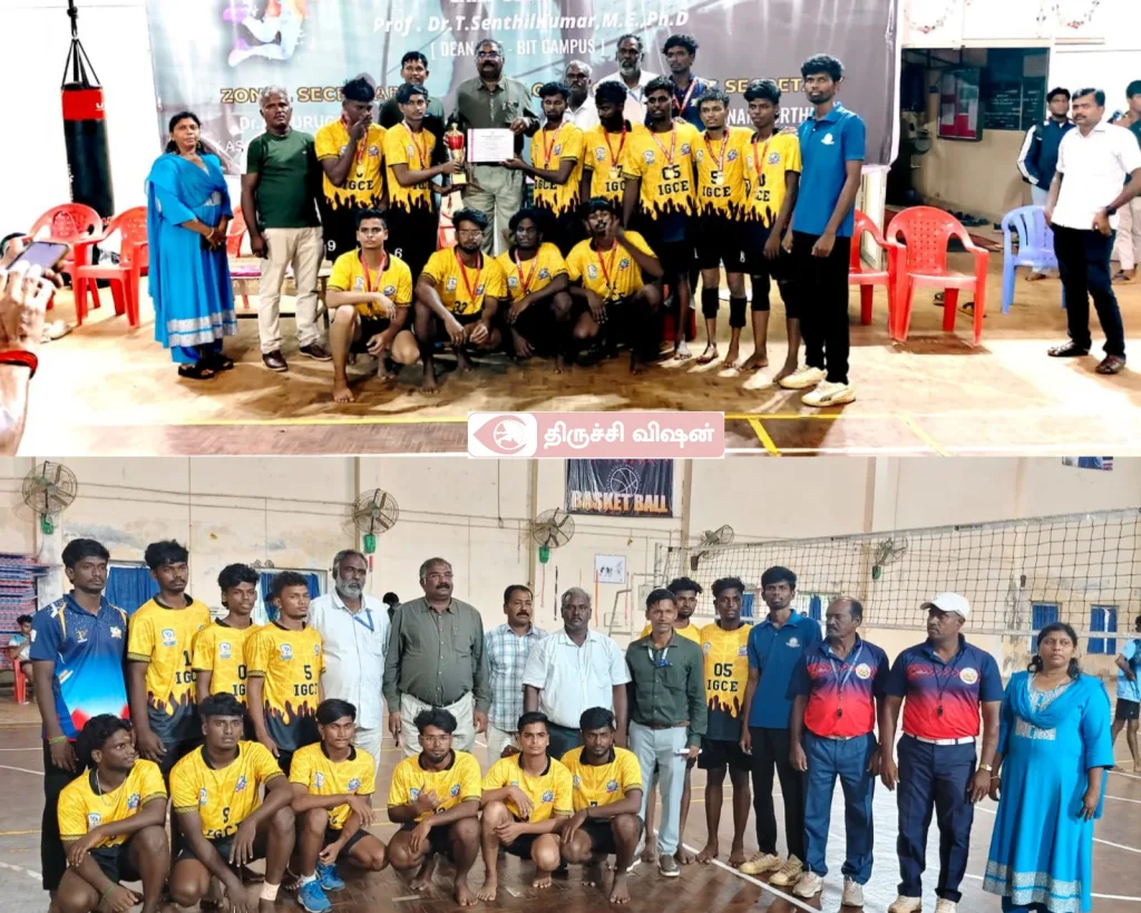 திருச்சி, 17.10.2025 அண்ணா பல்கலைக்கழகத்தின் Zone–13 ஆண்கள் வாலிபால் போட்டி திருச்சி அண்ணா பல்கலைக்கழக பொறியியல் கல்லூரி வளாகமான BIT–இல் நடைபெற்றது. பல கல்லூரிகள் பங்கேற்ற இப்போட்டியின் இறுதியில், இந்திரா கணேசன் பொறியியல் கல்லூரி (IGCE) அணி, UCE BIT அணியை 23–25, 25–19, 31–29 என்ற கணக்கில் வீழ்த்தி முதல் இடத்தை வென்றது.
