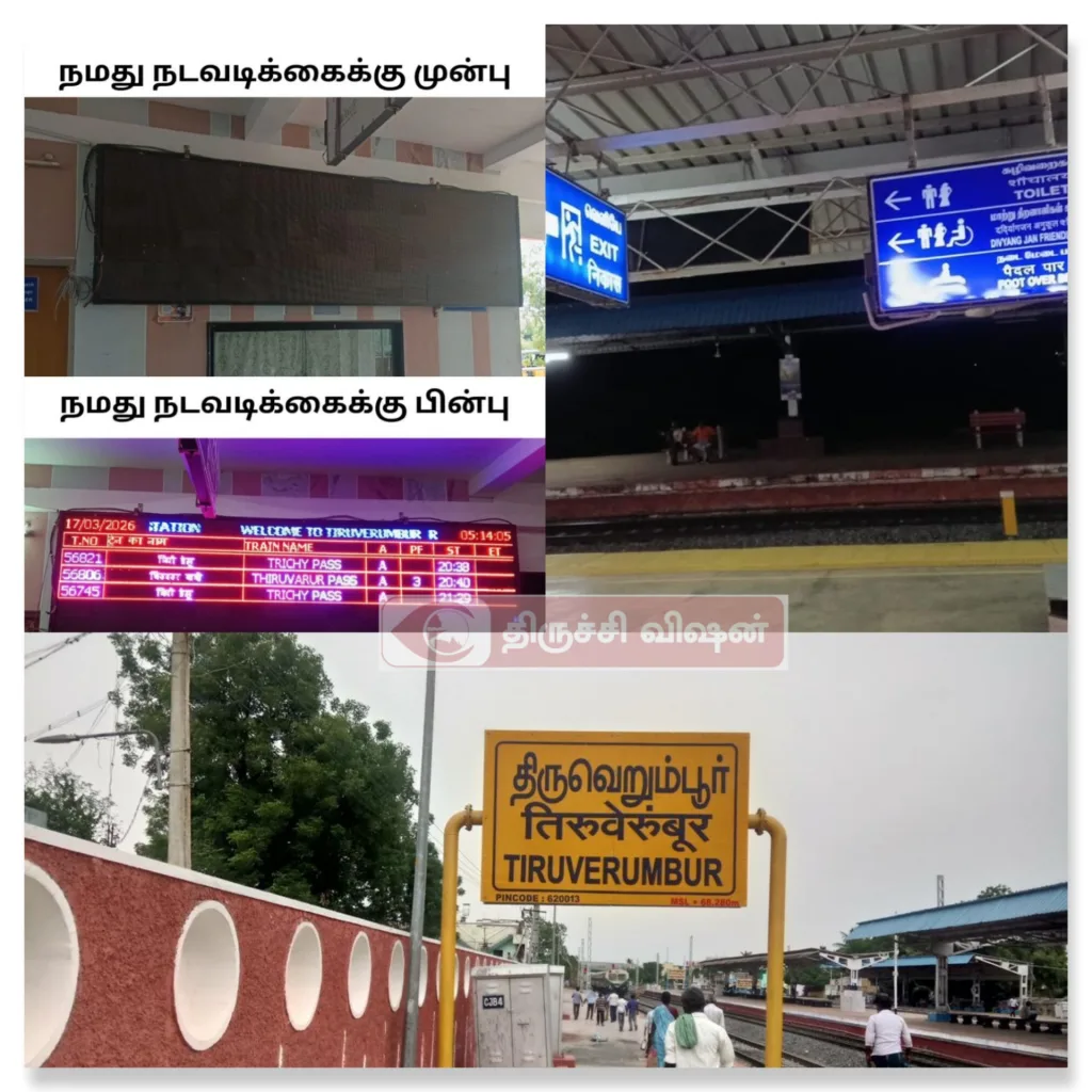 திருவெறும்பூர் ரயில் நிலையத்தில் தகவல் பலகை, அறிவிப்பு சீரமைப்பு: எனது தலையீட்டிற்கு பிறகு நடவடிக்கை