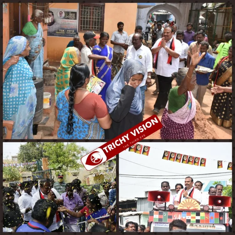 மதச்சார்பற்ற முற்போக்கு கூட்டணியின் சார்பில் திருச்சி கிழக்கில் போட்டியிடும் திராவிட முன்னேற்ற கழகத்தின் வெற்றி வேட்பாளர் முனைவர் இனிகோ இருதயராஜ்  திறந்த வேனில் பொது மக்களிடம் வாக்கு சேகரித்தார்.