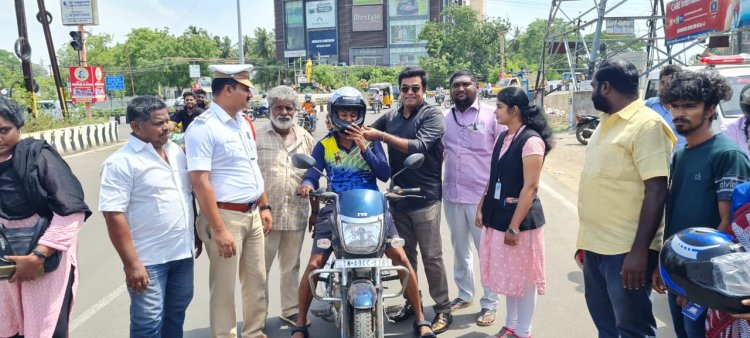 தலைக்கவசம் அணிவது குறித்து நூதன விழிப்புணர்வு!