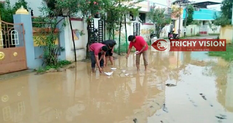 பெரும் சிரமத்துக்கு ஆளாகின்றனர். இதனை மாநகராட்சிக்கு அறிவுறுத்தும் வண்ணம் அப்பகுதியிலுள்ள வீட்டினர் தங்கள் வீட்டுக்கு முன்னால் தேங்கி நிற்கும் மழை நீரில் காகித கப்பல் செய்து மிதக்கவிட்டு மாநகராட்சிக்கு தங்கள் நிலையை எடுத்துரைக்கும் போராட்டம் நடத்தினர்.