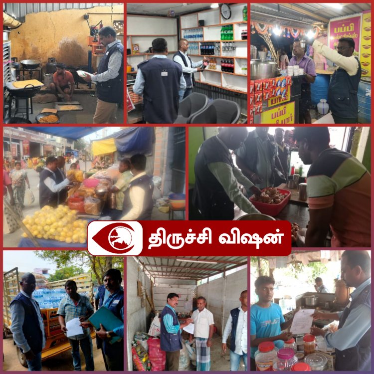 சமயபுரம் கோயிலில் இன்று மற்றும் நாளை நடைபெறவிருக்கும் பூச்சொரிதல் விழாவை முன்னிட்டு அதனை சுற்றியுள்ள 71 உணவு வணிக கடைகள் நேற்று ஆய்வு செய்யப்பட்டது அதில் 22 கடைகளுக்கு உணவு பாதுகாப்பு உரிமம் இல்லாததால் உணவு பாதுகாப்பு துறை பிரிவு 63 இன் கீழ் நோட்டீஸ் வழங்கப்பட்டுள்ளது. நான்கு கடைகளுக்கு பிரிவு 55 நோட்டீஸ் வழங்கப்பட்டுள்ளது.