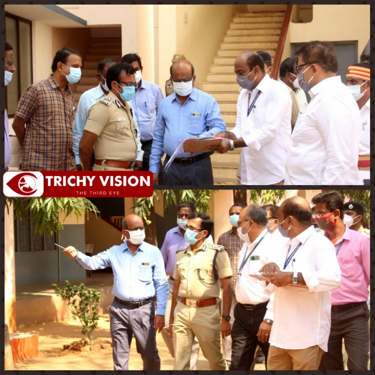 திருச்சிராப்பள்ளி மாவட்ட எல்லைக்குட்பட்ட திருச்சி கிழக்கு மற்றும் மேற்கு சட்டமன்ற தொகுதிகளுக்கான வாக்கு எண்ணிக்கை 02.05.2021 அன்று நடைபெறவுள்ள மையமான ஜமால் முகமது தன்னாட்சிக் கல்லூரியில் செய்யப்பட வேண்டிய பாதுகாப்பு ஏற்பாடுகள் குறித்து திருச்சி மாநகர காவல் ஆணையர் முனைவர் லோகநாதன், மாவட்ட தேர்தல் அலுவலர் மற்றும் மாவட்ட ஆட்சித்தலைவர் சிவராசு இன்று 19.03.2021 நேரில் பார்வையிட்டு ஆய்வு செய்தனர்.