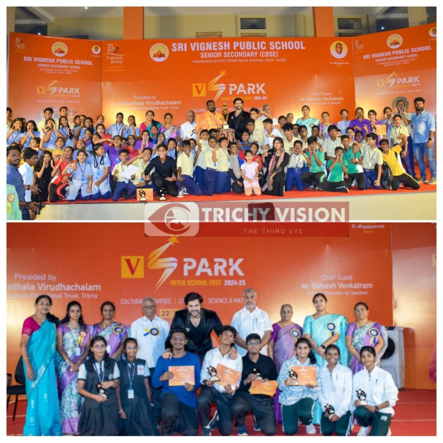 திருச்சி உறையூர் ஸ்ரீ விக்னேஷ் 1. பப்ளிக் சீனியர் செகன்டரி பள்ளியில் பள்ளிகளுக்கு இடையிலான ஸ்பார்க் எனும் கலாசாரம், இலக்கியம், அறிவியல், கணிதம் குறித்த பல்வேறு போட்டிகள் நடந்தது. இதில் விக்னேஷ் கல்விக் குழும அறங்காவலர் சகுந்தலா விருத்தாச்சலம் தலைமை தாங்கினார். தலைவர் கோபிநாதன் முன்னிலை வகித்தார்.